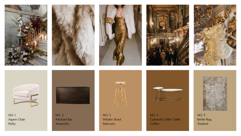 For evenings that call for champagne towers and metallic touches. Rich textures, glowing light, and warm neutrals set the scene.