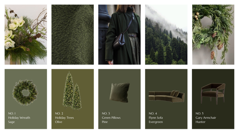 Deep greens, pine textures, and natural holiday accents for a cozy yet sophisticated vibe.
