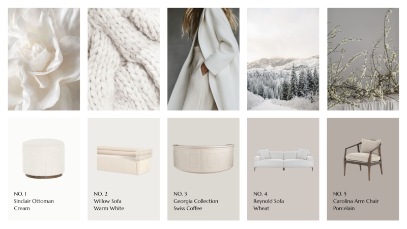 Layered textures in creamy neutrals evoke a crisp, serene winter landscape. Effortless, elegant, and timeless.